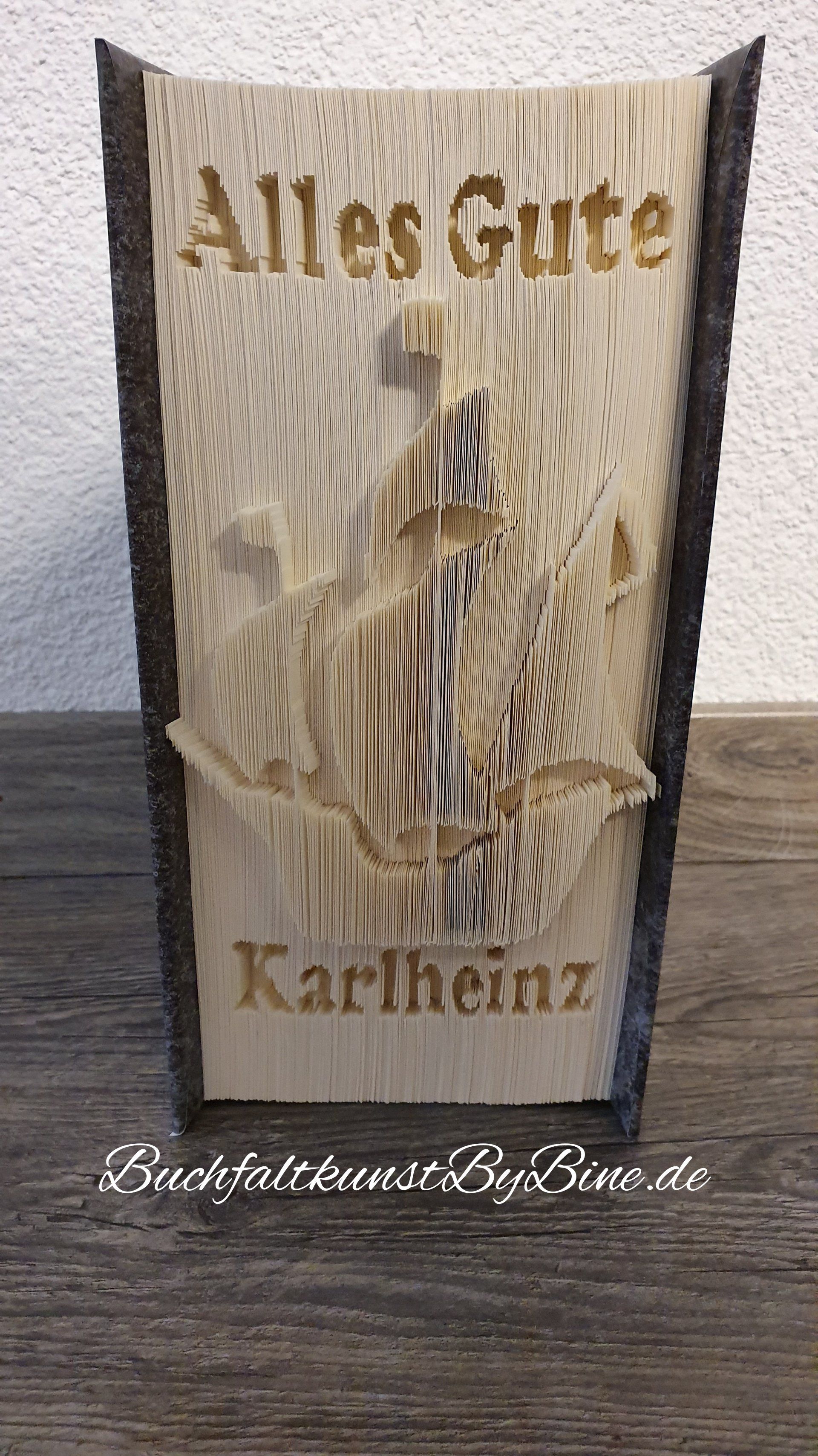 Bitte beachten Sie bei einer Bestellung, dass es bis zu 4 Wochen dauern kann, bis das fertige Kunstwerk bei Ihnen ist. Es handelt sich hierbei um "handmade" Buchfaltkunst. Das heißt es wird bei jedem Buch jede Seite einzeln bearbeitet. Man kann das Motiv deswegen erst nach und nach erkennen. Dennoch schicken ich während der Bearbeitung des Buches immer mal wieder ein Foto vom Kunstwerk.